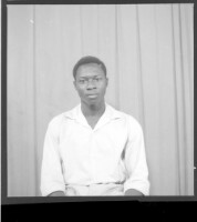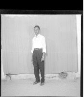 3389. EAP449/2/5/1388 Reference (shelfmark): EAP449/2/5/1388 Title: A young man standing in the studio wearing a white shirt and black pants Collection Area: Endangered Archives Programme Languages: Not applicable Date Range: 2nd half od the 20th century Extent: 1 TIFF image