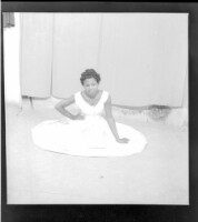 3385. EAP449/2/5/1384 Reference (shelfmark): EAP449/2/5/1384 Title: A young woman sitting on the studio floor wearing a white dress Collection Area: Endangered Archives Programme Languages: Not applicable Date Range: 2nd half od the 20th century Extent: 1 TIFF image