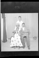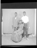 3416. EAP449/2/5/1415 Reference (shelfmark): EAP449/2/5/1415 Title: Three people in the studio; a man standing in back, and a man and a woman wearing necklaces sitting in front Collection Area: Endangered Archives Programme Languages: Not applicable Date Range: 2nd half od the 20th century Extent: 1 TIFF image
