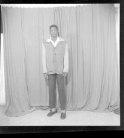 3582. EAP449/2/6/136 Reference (shelfmark): EAP449/2/6/136 Title: A man wearing a shirt and a sweater, standing facing forward in the studio. Collection Area: Endangered Archives Programme Languages: Not applicable Date Range: 2nd half od the 20th century Extent: 1 TIFF image