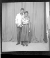 3616. EAP449/2/6/170 Reference (shelfmark): EAP449/2/6/170 Title: A man wearing a shirt and a woman wearing a skirt standing face-forward in the studio. Collection Area: Endangered Archives Programme Languages: Not applicable Date Range: 2nd half od the 20th century Extent: 1 TIFF image