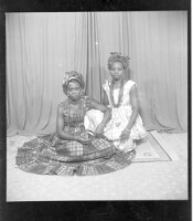 3618. EAP449/2/6/172 Reference (shelfmark): EAP449/2/6/172 Title: Two women wearing dresses, head wraps, and necklaces sitting on the ground face-forward in the studio. Collection Area: Endangered Archives Programme Languages: Not applicable Date Range: 2nd half od the 20th century Extent: 1 TIFF image