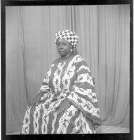 3619. EAP449/2/6/173 Reference (shelfmark): EAP449/2/6/173 Title: An old woman wearing a large boubou sitting in profile in the studio. Collection Area: Endangered Archives Programme Languages: Not applicable Date Range: 2nd half od the 20th century Extent: 1 TIFF image