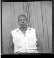 3620. EAP449/2/6/174 Reference (shelfmark): EAP449/2/6/174 Title: A man wearing a cut shirt sitting face-forward in the studio. Collection Area: Endangered Archives Programme Languages: Not applicable Date Range: 2nd half od the 20th century Extent: 1 TIFF image