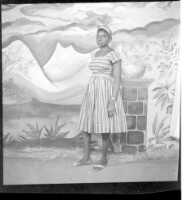 3672. EAP449/2/6/226 Reference (shelfmark): EAP449/2/6/226 Title: A woman wearing a dress standing in profile in the studio. Collection Area: Endangered Archives Programme Languages: Not applicable Date Range: 2nd half od the 20th century Extent: 1 TIFF image