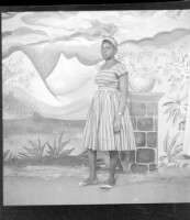 3676. EAP449/2/6/230 Reference (shelfmark): EAP449/2/6/230 Title: A woman with a head wrap standing in profile in the studio. Collection Area: Endangered Archives Programme Languages: Not applicable Date Range: 2nd half od the 20th century Extent: 1 TIFF image