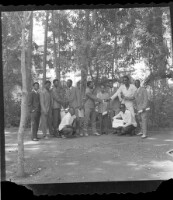 3674. EAP449/2/6/228 Reference (shelfmark): EAP449/2/6/228 Title: A photo of a group of 11 people, 9 standing and 2 sitting in front of trees. Collection Area: Endangered Archives Programme Languages: Not applicable Date Range: 2nd half od the 20th century Extent: 1 TIFF image