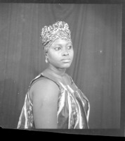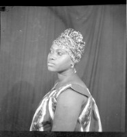 3677. EAP449/2/6/231 Reference (shelfmark): EAP449/2/6/231 Title: A woman with a head wrap standing in profile in the studio. Collection Area: Endangered Archives Programme Languages: Not applicable Date Range: 2nd half od the 20th century Extent: 1 TIFF image
