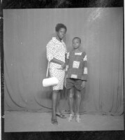 3721. EAP449/2/6/275 Reference (shelfmark): EAP449/2/6/275 Title: A woman with a bag and a boy standing face-forward in the studio. Collection Area: Endangered Archives Programme Languages: Not applicable Date Range: 2nd half od the 20th century Extent: 1 TIFF image