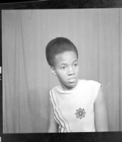 3724. EAP449/2/6/278 Reference (shelfmark): EAP449/2/6/278 Title: A girl wearing a t-shirt sitting in profile in the studio. Collection Area: Endangered Archives Programme Languages: Not applicable Date Range: 2nd half od the 20th century Extent: 1 TIFF image