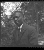 3727. EAP449/2/6/281 Reference (shelfmark): EAP449/2/6/281 Title: A man wearing a suit sitting in profile in front of trees. Collection Area: Endangered Archives Programme Languages: Not applicable Date Range: 2nd half od the 20th century Extent: 1 TIFF image