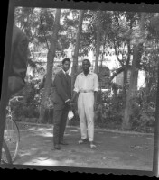 3730. EAP449/2/6/284 Reference (shelfmark): EAP449/2/6/284 Title: Two men, one wearing a suit and the other wearing a shirt in front of trees. Collection Area: Endangered Archives Programme Languages: Not applicable Date Range: 2nd half od the 20th century Extent: 1 TIFF image