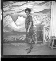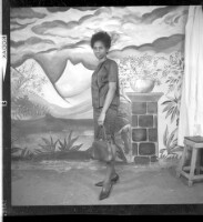 3746. EAP449/2/6/300 Reference (shelfmark): EAP449/2/6/300 Title: A woman wearing a skirt with a handbag standing face-forward in the studio. Collection Area: Endangered Archives Programme Languages: Not applicable Date Range: 2nd half od the 20th century Extent: 1 TIFF image