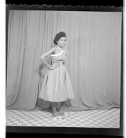 100. EAP449/2/14/193 Reference (shelfmark): EAP449/2/14/193 Title: A woman wearing a dress standing in profile in the studio. Collection Area: Endangered Archives Programme Languages: Not applicable Date Range: 2nd half od the 20th century Extent: 1 TIFF image