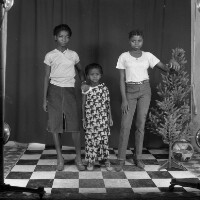 122. EAP054/1/140/252 Reference (shelfmark): EAP054/1/140/252 Title: Recreational photograph [c 1984] Scope & Content: 3 girls standing by plastic tree Format of original: 59mm x 59mm plastic negative Collection Area: Endangered Archives Programme Languages: Not applicable Date Range: c 1984 Extent: 1 TIFF image