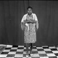 128. EAP054/1/140/264 Reference (shelfmark): EAP054/1/140/264 Title: Recreational photograph [c 1984] Scope & Content: Young woman standing hands clasped in front Format of original: 59mm x 59mm plastic negative Collection Area: Endangered Archives Programme Languages: Not applicable Date Range: c 1984 Extent: 1 TIFF image