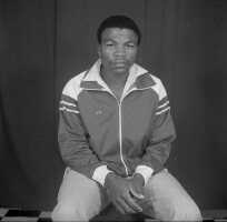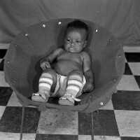 2 boys standing, one with a ball in his right hand, the others right hand hidden by a plastic tree between them. Format of original: 59mm x 59mm plastic negative