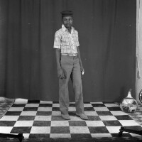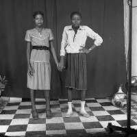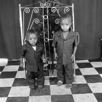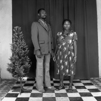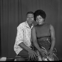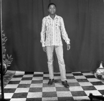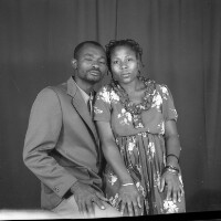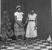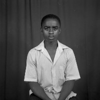 Employees of the General Society of Banks of Cameroon (SGBC) in Mbouda in front of their office on National Work Day. Format of original: 59mm x 59mm plastic negative