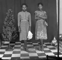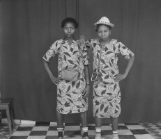 165. EAP054/1/140/384 Reference (shelfmark): EAP054/1/140/384 Title: Recreational photograph [c 1984] Scope & Content: 2 women from Bagam in matching dresses, standing, one in hat. Format of original: 51mm x 59mm plastic negative Collection Area: Endangered Archives Programme Languages: Not applicable Date Range: c 1984 Extent: 1 TIFF image