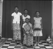 169. EAP054/1/140/401 Reference (shelfmark): EAP054/1/140/401 Title: Recreational photograph [c 1984] Scope & Content: The 3 children of Madame Tchinda, standing, around her, sitting. Format of original: 55mm x 59mm plastic negative Collection Area: Endangered Archives Programme Languages: Not applicable Date Range: c 1984 Extent: 1 TIFF image