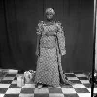 170. EAP054/1/140/403 Reference (shelfmark): EAP054/1/140/403 Title: Recreational photograph [c 1984] Scope & Content: Standing, a woman from Babadjou in "pagne" dress. Format of original: 59mm x 59mm plastic negative Collection Area: Endangered Archives Programme Languages: Not applicable Date Range: c 1984 Extent: 1 TIFF image