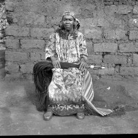 206. EAP054/1/140/70 Reference (shelfmark): EAP054/1/140/70 Title: Recreational photograph [c 1984] Scope & Content: Woman sitting with a horse tail fly whisk across her lap Format of original: 59mm x 59mm plastic negative Collection Area: Endangered Archives Programme Languages: Not applicable Date Range: c 1984 Extent: 1 TIFF image