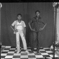 204. EAP054/1/140/63 Reference (shelfmark): EAP054/1/140/63 Title: Recreational photograph [c 1984] Scope & Content: 2 young men standing, one with hand in pocket Format of original: 59mm x 59mm plastic negative Collection Area: Endangered Archives Programme Languages: Not applicable Date Range: c 1984 Extent: 1 TIFF image