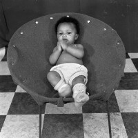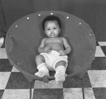 209. EAP054/1/140/84 Reference (shelfmark): EAP054/1/140/84 Title: Recreational photograph [c 1984] Scope & Content: Baby in an armchair Format of original: 59mm x 59mm plastic negative Collection Area: Endangered Archives Programme Languages: Not applicable Date Range: c 1984 Extent: 1 TIFF image