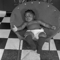 233. EAP054/1/140/285 Reference (shelfmark): EAP054/1/140/285 Title: Recreational photograph [c 1984] Scope & Content: Baby in an armchair. Format of original: 59mm x 59mm plastic negative Collection Area: Endangered Archives Programme Languages: Not applicable Date Range: c 1984 Extent: 1 TIFF image