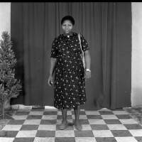 239. EAP054/1/140/336 Reference (shelfmark): EAP054/1/140/336 Title: Recreational photograph [c 1984] Scope & Content: Woman from Bagam standing in dark dress, paler bag over left shoulder. Format of original: 59mm x 59mm plastic negative Collection Area: Endangered Archives Programme Languages: Not applicable Date Range: c 1984 Extent: 1 TIFF image