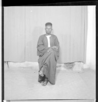 2461. EAP449/2/5/1302 Reference (shelfmark): EAP449/2/5/1302 Title: A man sitting in the studio wearing a black boubou Collection Area: Endangered Archives Programme Languages: Not applicable Date Range: 2nd half od the 20th century Extent: 1 TIFF image