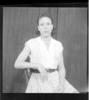2526. EAP449/2/6/889 Reference (shelfmark): EAP449/2/6/889 Title: A woman wearing a skirt standing face-forward in the studio. Collection Area: Endangered Archives Programme Languages: Not applicable Date Range: 2nd half od the 20th century Extent: 1 TIFF image