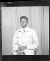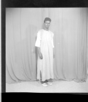 2525. EAP449/2/6/864 Reference (shelfmark): EAP449/2/6/864 Title: A man wearing a boubou standing face-forward in the studio. Collection Area: Endangered Archives Programme Languages: Not applicable Date Range: 2nd half od the 20th century Extent: 1 TIFF image