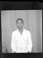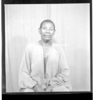 2523. EAP449/2/6/839 Reference (shelfmark): EAP449/2/6/839 Title: A man wearing a boubou standing face-forward in the studio. Collection Area: Endangered Archives Programme Languages: Not applicable Date Range: 2nd half od the 20th century Extent: 1 TIFF image