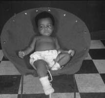 278. EAP054/1/163/206 Reference (shelfmark): EAP054/1/163/206 Title: Recreational photograph [c 1983] Scope & Content: Baby in an armchair Format of original: 59mm x 59mm plastic negative Collection Area: Endangered Archives Programme Languages: Not applicable Date Range: c 1983 Extent: 1 TIFF image