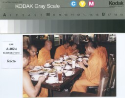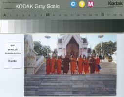 Pha Khamchan Virachitta Maha Thela,former abbot of Vat Saen Sukharam Luang Prabang travelled to the north provinces of Thailand.Now were at the Doysutep pagoda Chiengmai province.The photo was taken on Feb, 19th,A.D.1985 Original material consists of: chromogenic print
