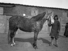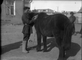 3661. EAP264/1/8/6/90 Reference (shelfmark): EAP264/1/8/6/90 Title: A veterinary surgeon tending a horse, Ulaanbaatar [1930s] Collection Area: Endangered Archives Programme Languages: Not applicable Date Range: 1930s Extent: 1 TIFF image
