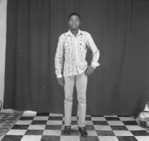 55. EAP054/1/140/402 Reference (shelfmark): EAP054/1/140/402 Title: Recreational photograph [c 1984] Scope & Content: Young man from Bamessingue standing, in white, left thumb in pocket. Format of original: 56mm x 59mm plastic negative Collection Area: Endangered Archives Programme Languages: Not applicable Date Range: c 1984 Extent: 1 TIFF image