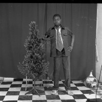 83. EAP054/1/140/105 Reference (shelfmark): EAP054/1/140/105 Title: Recreational photograph [c 1984] Scope & Content: Boy standing, one hand on hip, other touching plastic tree Format of original: 59mm x 59mm plastic negative Collection Area: Endangered Archives Programme Languages: Not applicable Date Range: c 1984 Extent: 1 TIFF image