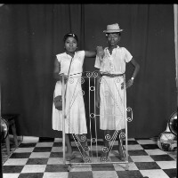 84. EAP054/1/140/107 Reference (shelfmark): EAP054/1/140/107 Title: Recreational photograph [c 1984] Scope & Content: 2 young women standing behind iron grillwork, one leaning on the other Format of original: 59mm x 59mm plastic negative Collection Area: Endangered Archives Programme Languages: Not applicable Date Range: c 1984 Extent: 1 TIFF image