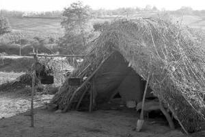 Shepherd's cabine; village of Valchedram, district of Lom; 1946-1952; taken by N. Nikolov; black-and-white negative with good quality, dirty; 24x36 mm; Inventory in Bulgarian language