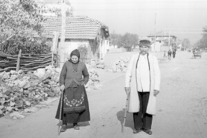 Male and female costumes; village of Valchedram, district of Lom; 1946-1952; taken by N. Nikolov; black-and-white negative with good quality, dirty; 24x36 mm; Inventory in Bulgarian language