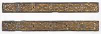 Two wooden covers for a palm leaf manuscript (bai lān) from the Lao or Northern Thai (Lanna) manuscript tradition, decorated with raised lacquer and gilded floral ornaments, inlaid with mirror glass.