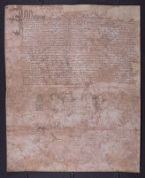 A notarial instrument certifying the safe delivery of Margaret of Anjou (b. 1430, d. 1482), once Queen of England and daughter of René of Anjou, by Sir Thomas Montgomery (b. c. 1430, d. 1495), commissioner for Edward IV (r. 1461-1470, 1471-1483), King of England, to Louis XI (r. 1461-1483), King...