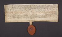 - Acquittance by D. Johanna de Prandonibus, Abbess of the monastery of Saints Cosmas and Damian in Brescia, to Perecinus de Valariis of Passirano, for four soldi and land at Campibassi; given at the monastery of Saints Cosmas and Damian, on 10 April 1351 [indict. iv]. Attested by the notarial ma...