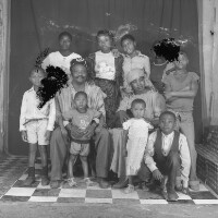 7. EAP054/1/105/7 Reference (shelfmark): EAP054/1/105/7 Title: Recreational photograph [c 1987] Scope & Content: Family group of 11 people, 8 standing, 2 sitting, 1 crouching. Format of original: 59mm x 59mm plastic negative Collection Area: Endangered Archives Programme Languages: Not applicable Date Range: c 1987 Extent: 1 TIFF image