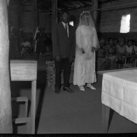 101. EAP054/1/108/101 Reference (shelfmark): EAP054/1/108/101 Title: Recreational photograph [c 1970-c 1995] Scope & Content: Bridal couple and onlookers in front of a priest in church. Format of original: 59mm x 59mm plastic negative Collection Area: Endangered Archives Programme Languages: Not applicable Date Range: c 1970-c 1995 Extent: 1 TIFF image