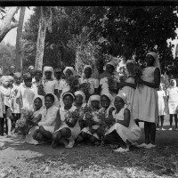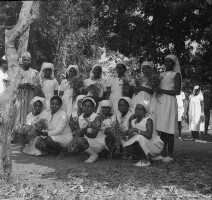 103. EAP054/1/108/103 Reference (shelfmark): EAP054/1/108/103 Title: Recreational photograph [c 1970-c 1995] Scope & Content: Womens choir, all holding flowers, sitting in the shade of a tree at a wedding. Format of original: 56mm x 59mm plastic negative Collection Area: Endangered Archives Programme Languages: Not applicable Date Range: c 1970-c 1995 Extent: 1 TIFF image