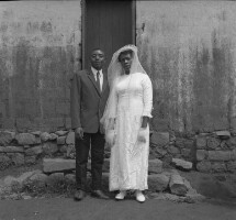 104. EAP054/1/108/104 Reference (shelfmark): EAP054/1/108/104 Title: Recreational photograph [c 1970-c 1995] Scope & Content: Bridal couple outside a church. Format of original: 55mm x 59mm plastic negative Collection Area: Endangered Archives Programme Languages: Not applicable Date Range: c 1970-c 1995 Extent: 1 TIFF image