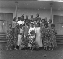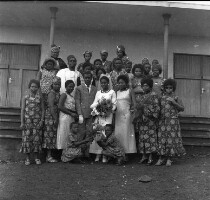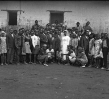 105. EAP054/1/108/105 Reference (shelfmark): EAP054/1/108/105 Title: Recreational photograph [c 1970-c 1995] Scope & Content: Wedding party of more than 50 people around bridal couple, 5 girls crouching in front, outside a church. Format of original: 54mm x 59mm plastic negative Collection Area: Endangered Archives Programme Languages: Not applicable Date Range: c 1970-c 1995 Extent: 1 TIFF image